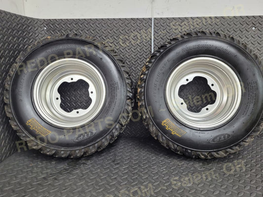 21x11-10 Kenda Gecko Rear Tires w- SS Stamped Steel Wheels *1 Wheel Damaged - Set of 2 *Used* F